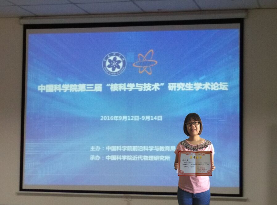 9月12-14日,中国科学院第三届“核科学与技术”研究生学术论坛在兰州召开。我院副院长、党委副书记常亮老师带队参加了此次论坛,丁洪斌教授课题组博士生崔晓倩在此次论坛上做口头报告,并荣获大会最佳报告奖(三等奖)。