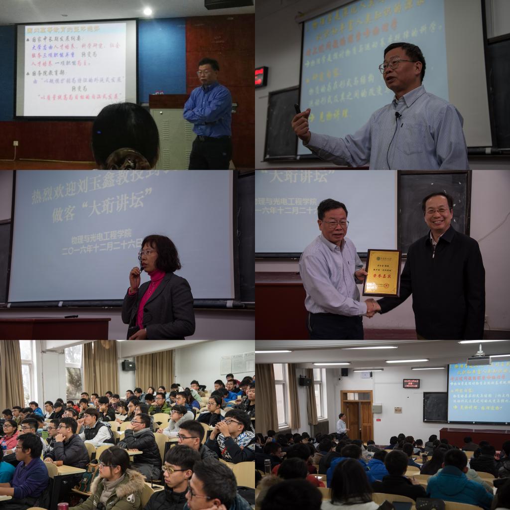 12月26日下午,刘玉鑫教授在机械馆251为好博官方网站低年级本科生做《物理学——不断推动人类社会文明进步的科学》科普导论讲座。讲座由学院主管教学副院长周玲教授主持,院长赵明山教授到场为刘玉鑫教授颁发“大珩讲坛”荣誉主讲纪念牌。在一个半小时的时间里,主讲人举例说明物理学是深化人类对自然界的认识和丰富人类知识的源泉,是几乎所有现代技术的源泉,是自然科学和工程技术的基础和先导。本场讲座进一步深化了低年级学生对物理学的重要性的认识,拓宽了学生们的知识面,帮助学生进一步了解学术前沿现状和动态,激发同学们学习物理并投身物理学及相关研究的兴趣。此外,刘玉鑫教授结合北京大学物理学科关于人才培养的理念和实践,向学生们介绍了一些科学的学习方法和经验,引导学生根据自己的兴趣,更主动地、有效地、个性化地学习、成长和发展。