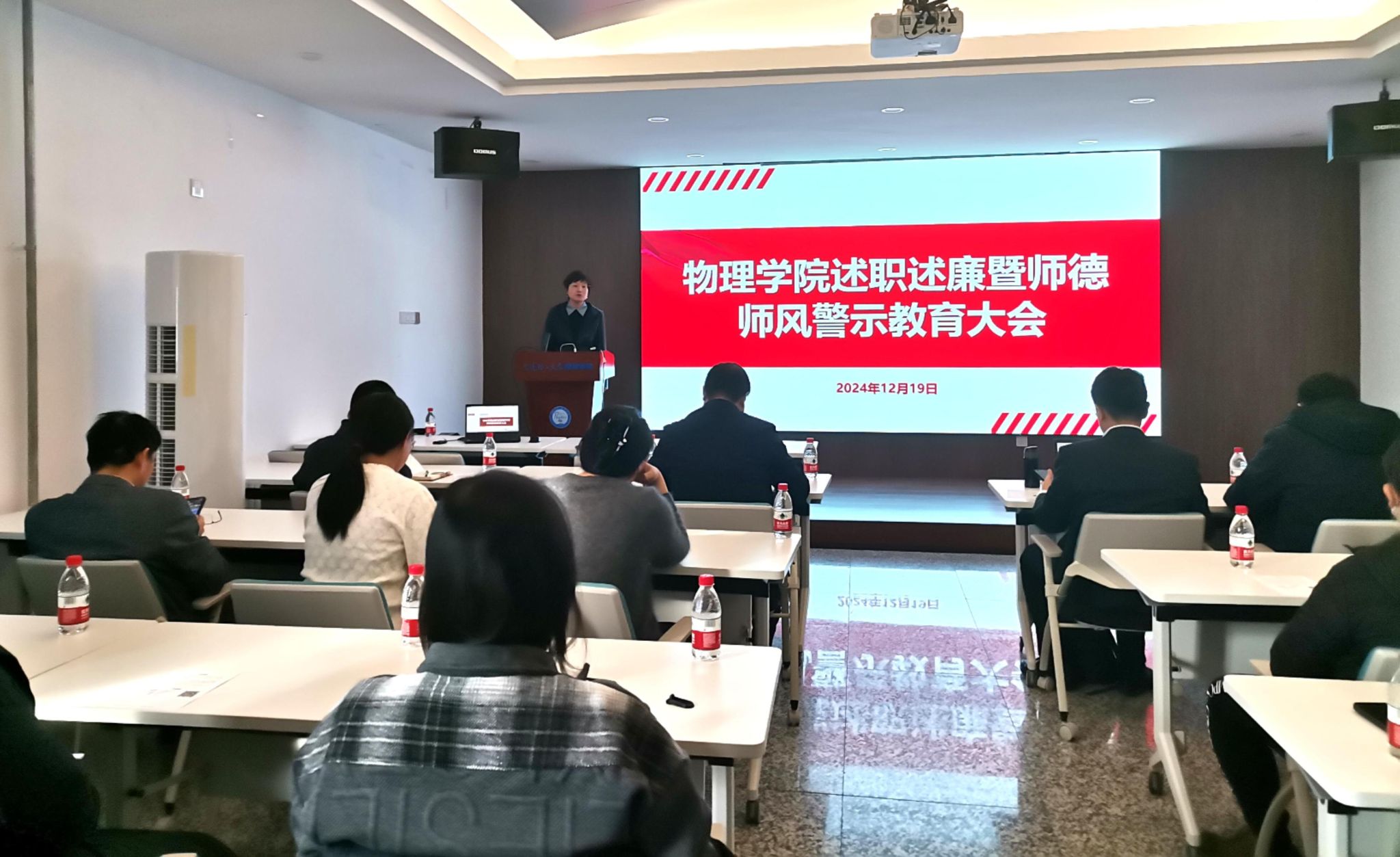 12月19日上午,好博官方网站2024年述职述廉暨师德师风警示教育大会在物理楼322室举行。好博官方网站领导班子成员、党委委员、纪委委员、师生党支部书记、全体教职工和学生代表参加此次会议。会议由学院党委副书记兼纪委书记于艳敏同志主持。