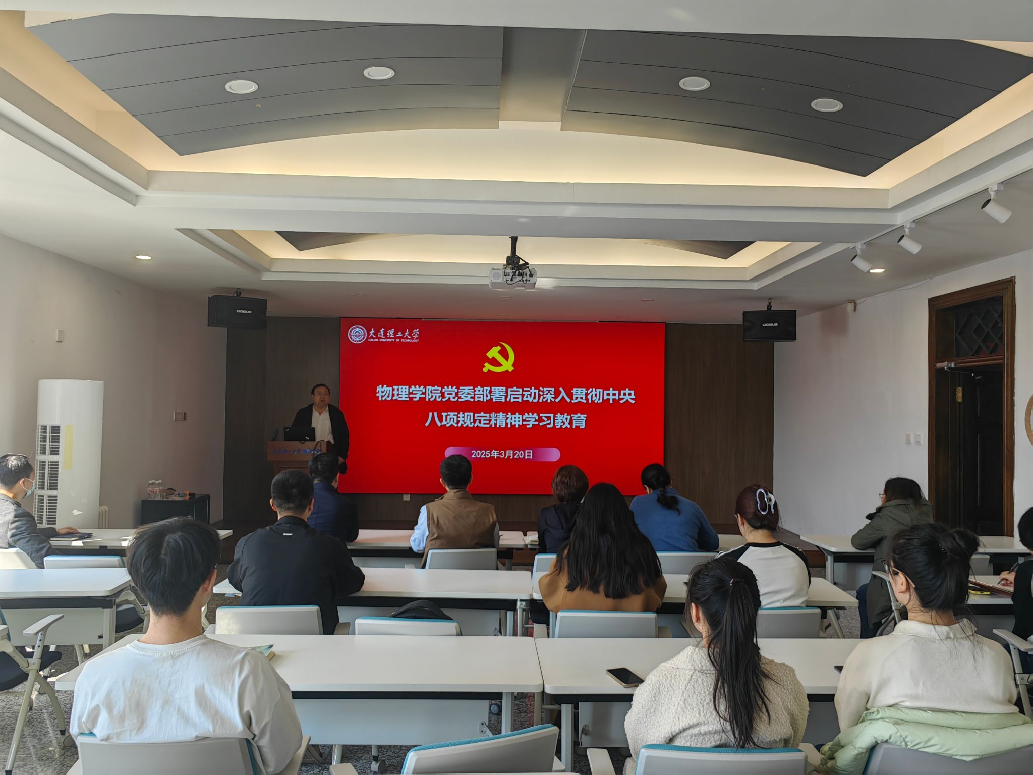 3月20日下午,好博官方网站党委在物理楼322会议室召开部署启动深入贯彻中央八项规定精神学习教育大会,传达学校党委深入贯彻中央八项规定精神学习教育部署会的会议精神,部署启动学院的学习教育工作。本次会议由学院党委书记于长水主持,学院党委委员和各支部书记参会。