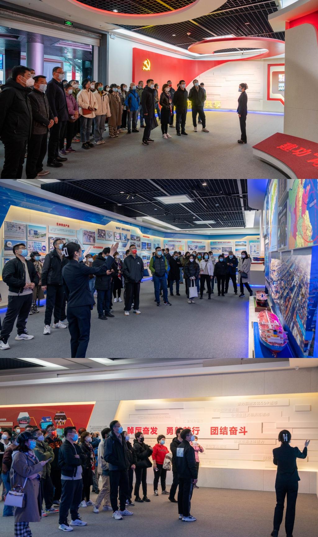 在讲解员的带领下,学院师生代表依次参观“创新引擎”“提升能级”“统筹兼顾”“深化合作”“举旗定向”“夯基固本”“踔厉奋发”等十个展区,一件件实物模型、一段段生动视频、一幅幅图片图表,生动展现了10年来大连市振兴发展的战略性举措、变革性实践、突破性进展、标志性成果。