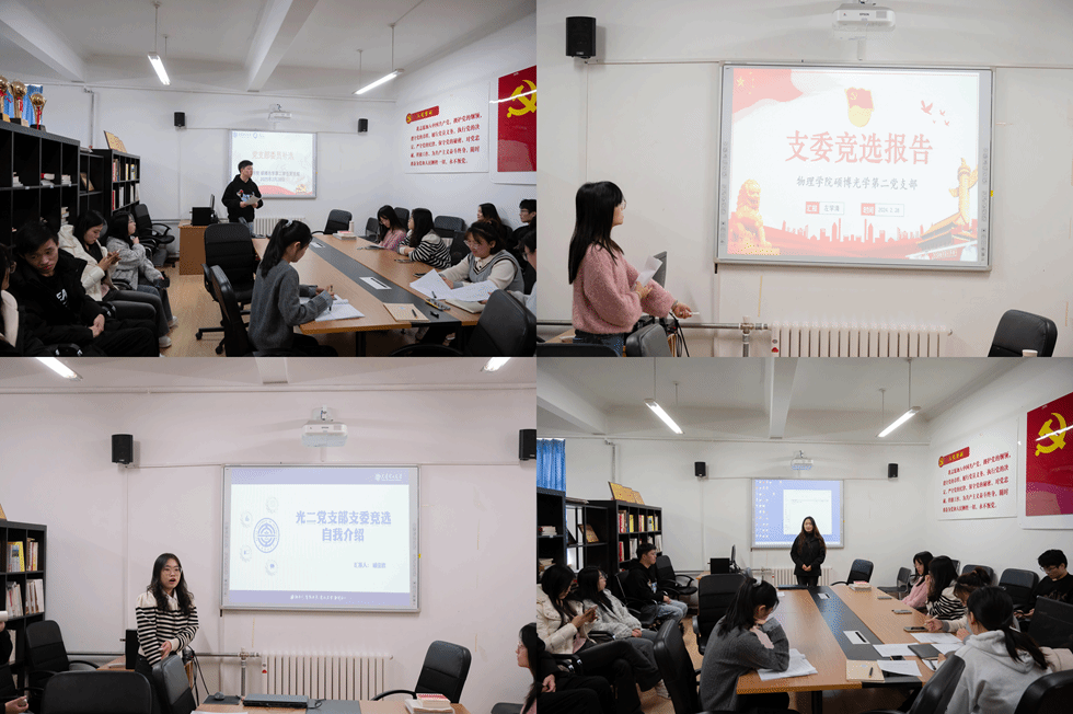 会议第二项,党支部委员补选。由于田杰同志与栗笑笑同志即将毕业,根据上级党组织批复,本次需增补2名支委。经过党员自主申报和支委会讨论研究,最终确定三名候选人,分别是戚佳欣同志、左学清同志、刘晓莹同志。三位同志分别做出了竞选演讲,与会党员进行无记名投票,由周冰同志担任监票人,李婧毓同志担任计票人,根据选举结果,戚佳欣同志和左学清同志当选为好博官方网站硕博光学第二学生党支部委员会委员。