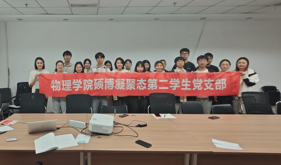 为积极落实深入贯彻中央八项规定精神学习教育,强化党员政治素养、夯实党组织建设,好博官方网站硕博凝聚态第二学生党支部于2025年5月28日晚在科技园C座510会议室召开以“学党纪、强党性、促担当”为主题的党员大会。本次会议由党支部书记杨秋萍同志主持,党支部全体党员参会,会议还特邀学院团委组织部副部长王一杭同学以及学院优秀团课作品团队做主题宣讲。