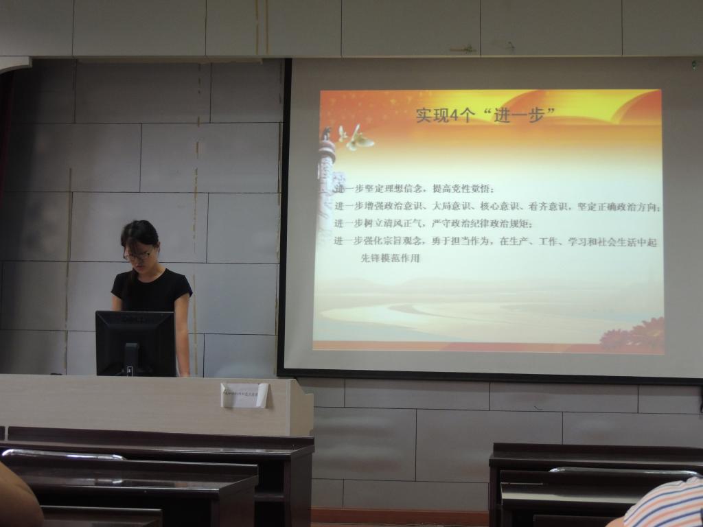 会上,韩楠楠、郭宇两位党员同志分别就当下时政热点——英国公投脱欧、东北经济复苏进行解读,程开同志以“两学一做”为主题为大家上了一堂精彩党课。