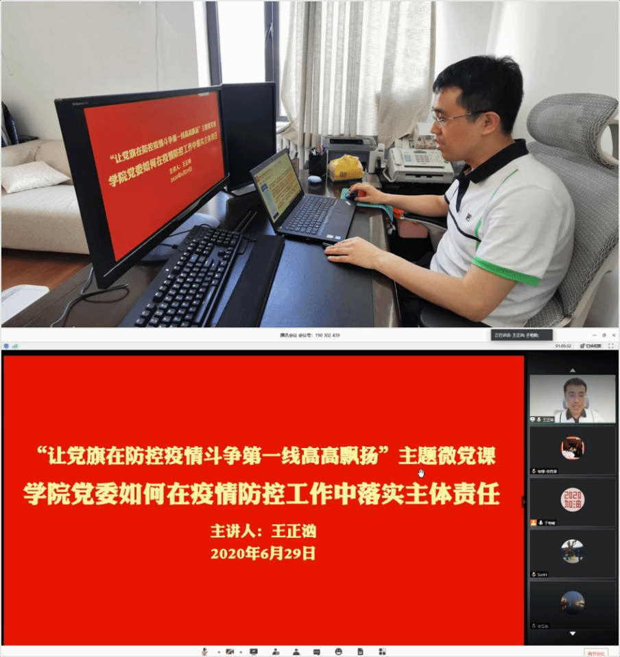6月29日,好博官方网站党委书记王正汹以网络报告形式为全院师生党员上了一堂题为《学院党委如何在疫情防控工作中落实主体责任》的微党课。王正汹通过阐述“主体责任”概念和介绍《党委(党组)落实全面从严治党主体责任规定》中党组(党委)的责任内容,强调“学院党委落实疫情这一特殊时期的主体责任,就是要深入学习贯彻落实习近平总书记关于疫情防控工作重要讲话和指示精神和党中央关于疫情防控工作的决策部署”;通过对好博官方网站疫情防控工作的阶段性总结,向参与疫情防控工作的师生党员表达感谢,激励学院各支部各党员继续充分发挥基层党组织战斗堡垒作用和共产党员的先锋模范作用。