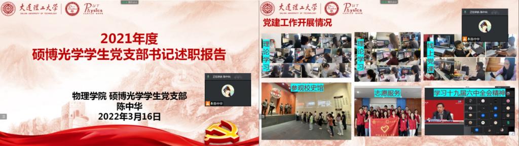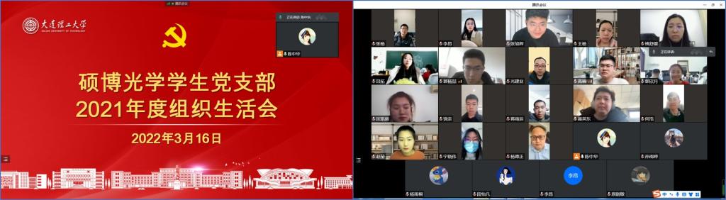 按照大连理工大学党委和好博官方网站党委的统一部署,结合学校疫情防控相关要求,好博官方网站硕博光学学生党支部于2022年3月16日下午,通过腾讯会议线上召开2021年度组织生活会。会议由支部书记陈中华同志主持,全体党员参加,好博官方网站副院长杨德正教授列席指导。