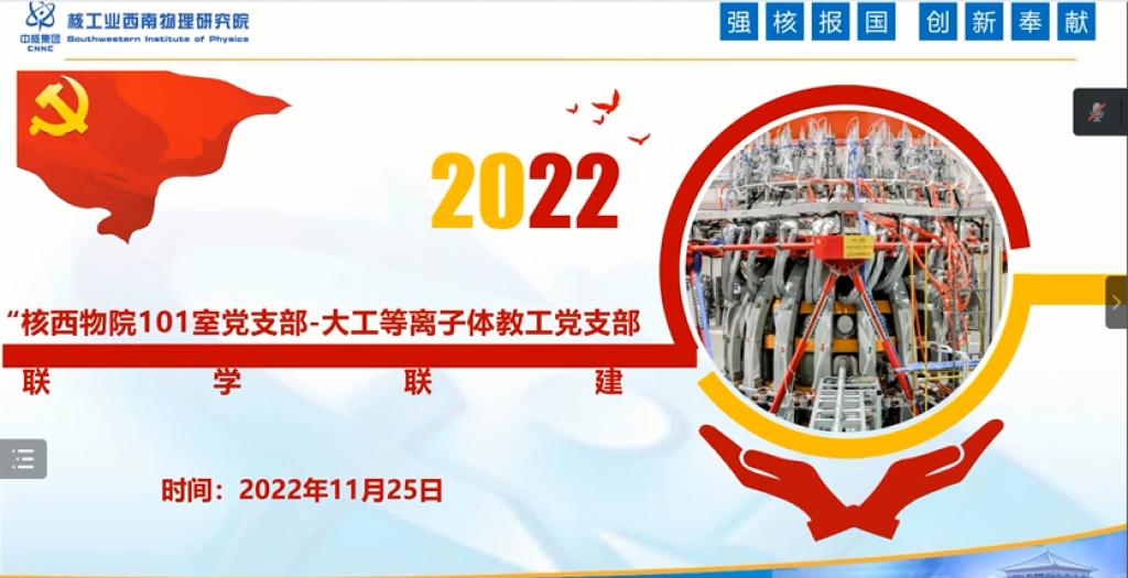 为学习宣传党的二十大精神,贯彻实施科教兴国战略、人才强国战略、创新驱动发展战略,推进学校“一融双高”和双一流建设加速跑,融合党建与学科建设,共促进同发展。11月25日中午好博官方网站等离子体物理教工党支部与核工业西南物理研究院等离子体理论和模拟研究室党支部(以下简称101室党支部)联合召开共建启动会,会议通过线上线下结合方式进行,双方支部全体党员参加会议。