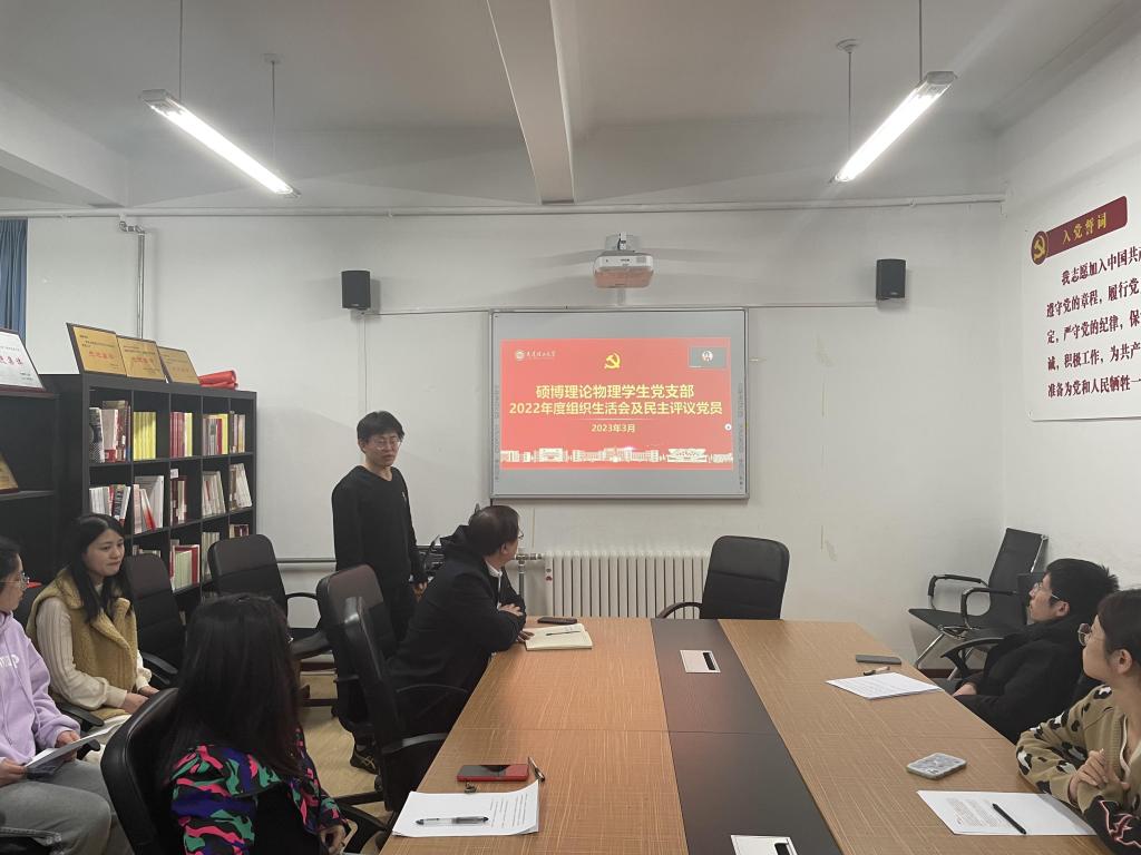 根据学校党委《关于召开2022年度基层党组织组织生活会和开展民主评议党员的通知》和学院党委的部署安排,支委会为更好开展组织生活会和民主评议党员相关工作进行精心准备,会前,支部围绕《学习党的二十大精神,正确理解中国式现代化》的主题党课教育,为开展好组织生活打下思想基础。硕博理论物理学生党支部2022年度组织生活会和民主评议党员于2023年3月2日晚7点在422会议室采取线上与线下相结合的方式进行开展。本次会议的主要内容有两部分,党课集中学习与组织生活会和民主评议党员。其中,集中学习围绕深入贯彻党的二十大精神和毛泽东同志“向雷锋同志学习”题词发表六十周年来开展。本次会议由支部书记刘玉强同志主持,好博官方网站副院长于长水同志出席会议,支部全体党员参加。