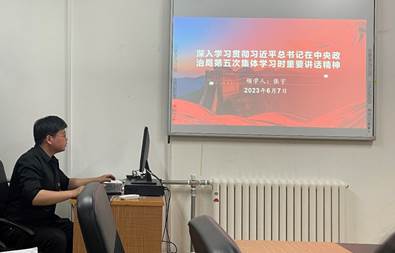 第二项议程,由张宇同志带领全体参会人员深入学习贯彻习近平总书记在中央政治局第五次集体学习时重要讲话精神。张宇同志首先为大家介绍了此次集中学习的背景,接下来从已经取得的成果、建设教育强国的目的、建设怎样的教育强国和如何建设教育强国四个方面开展分享。最后张宇同志强调我们要以习近平总书记重要讲话精神为指引,坚定信心、久久为功,为早日实现教育强国目标而共同努力。