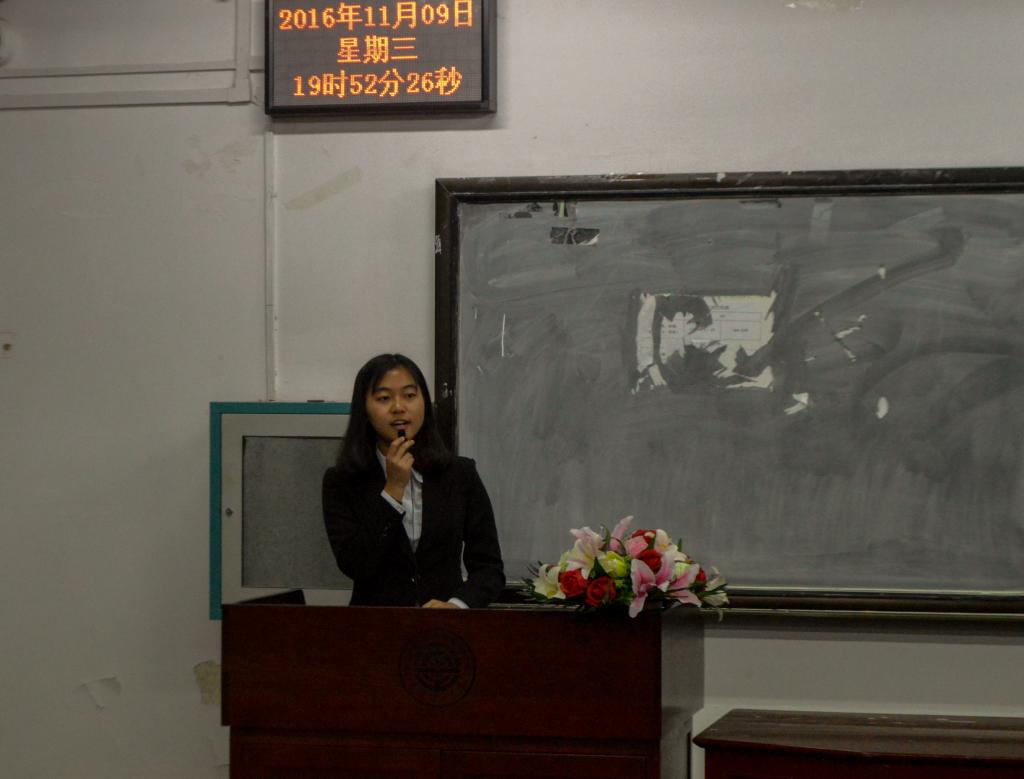 2016年11月9日晚,物理与光电工程学院2016-2017学年第一次团校培训于机械馆152室顺利开展。到场嘉宾有学院团委书记兼2016级辅导员佟西原老师,学生会主席兼团委副书记王序涛,团委常务副书记刘婉莹,学生会常务副主席王溥萌,学生会副主席兼办公室主任张博,学生会副主席兼讲辩部部长邹全,学生会副主席兼科技实践部部长张津豪,学生会副主席兼体育部部长赵瑀,社团联合会主席黄致远,职业规划与就业协会会长田昊沛以及团学社各部门部长。