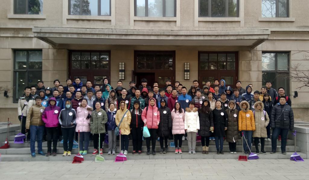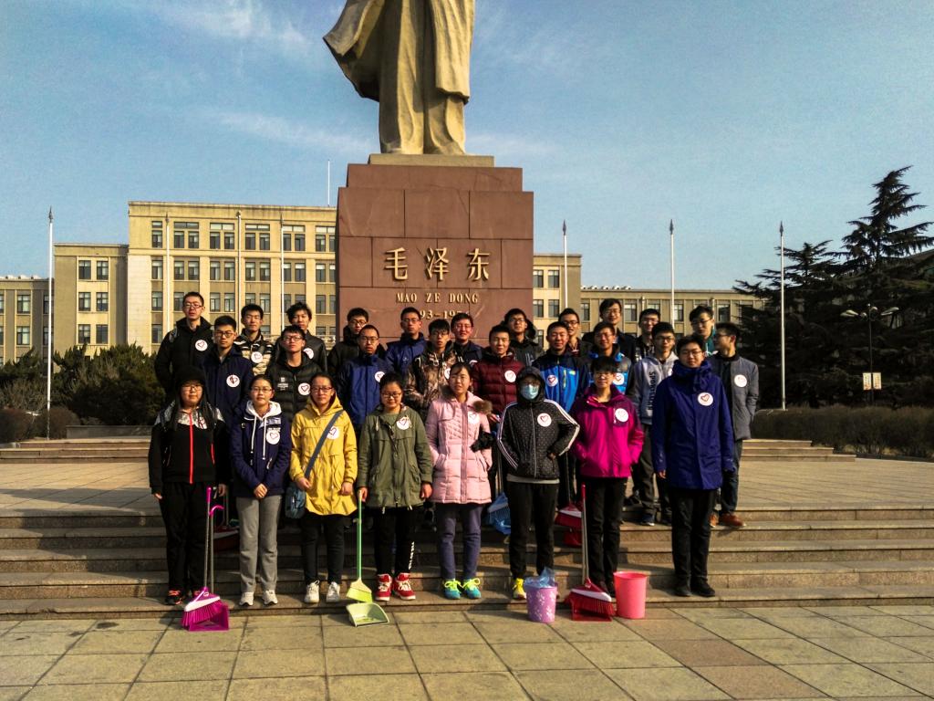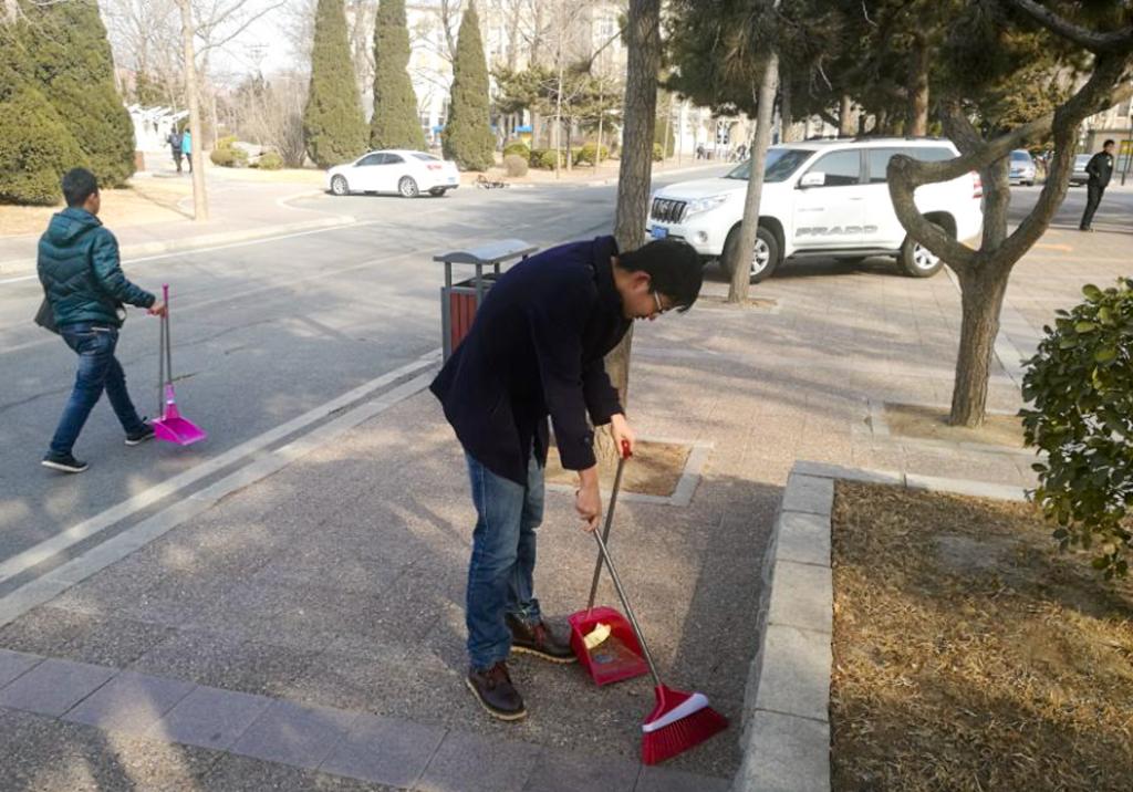 早上9:00,三个班级的同学们带着各自的清扫工具来到了毛主席像前集合,各班团支书带领同学们来到分配到的区域展开清扫工作。当时气温很低,又伴有大风,很多同学的手都被冻得通红,但同学们没有退缩,坚持完成清扫工作。