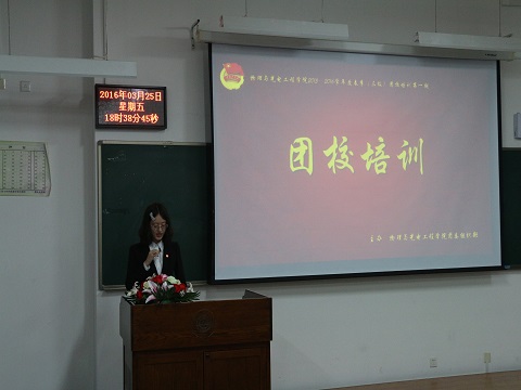3月25日晚,物理与光电工程学院春季学期第一期团校培训在西综B503教师举行。到会的嘉宾有学生会常务副主席龙泽,学生会副主席兼办公室主任兼外联部部长李晓龙,学生会副主席兼宣传中心主任杨沛豪。