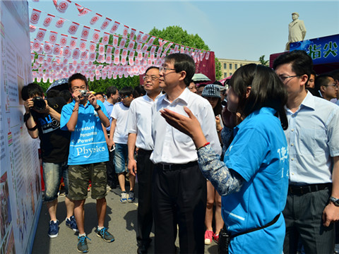 5月31日,大连理工大学第六届嘉年华盛装启幕,校园里人来人往,摩肩接踵,热闹非凡。物理与光电工程学院在伯川图书馆与毛主席像前进行展示,饱含物理文化气息的特色实验吸引了来自各个方面人群的兴趣关注。沿袭物理嘉年华“凝练物理语言,表达物理声音”以及物理学子为校庆65周年送祝福的主题,本次展示包括物理实验展示模块,物理实验体验模块,物理实验挑战模块,好博官方网站风彩展示模块以及物理学子祝福墙五大模块。各模块各具特色,缤纷多彩,给伯川门前带来浓郁的物理文化气息。上午,校领导前来我院展示区进行参观,表示了对我院工作的肯定与赞扬。