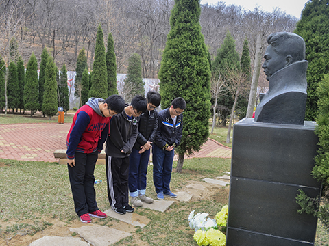 下午,张喆,李晓龙,胡金耀等好博官方网站分队成员一同乘车前往烈士山公园举行纪念活动。同学们首先参观了烈士山公园的烈士雕像,重温那段历史。随后,队员们于雕像前进行集体诗朗诵,以表达对烈士的悼念及对美好新时代的责任感。“争做优秀的共青团员,用生命,像烈士那样撰写精彩人生。”队员们诗朗的声音回荡在烈士山上空,对烈士们的悼念之情也久久不息。诗朗结束后,队员们在烈士雕像前举行佩戴团徽仪式,重温入团誓词,再次明确自己的职责使命。集体活动结束后,队员们分别对烈士雕像进行清扫,敬献鲜花,默哀致敬。