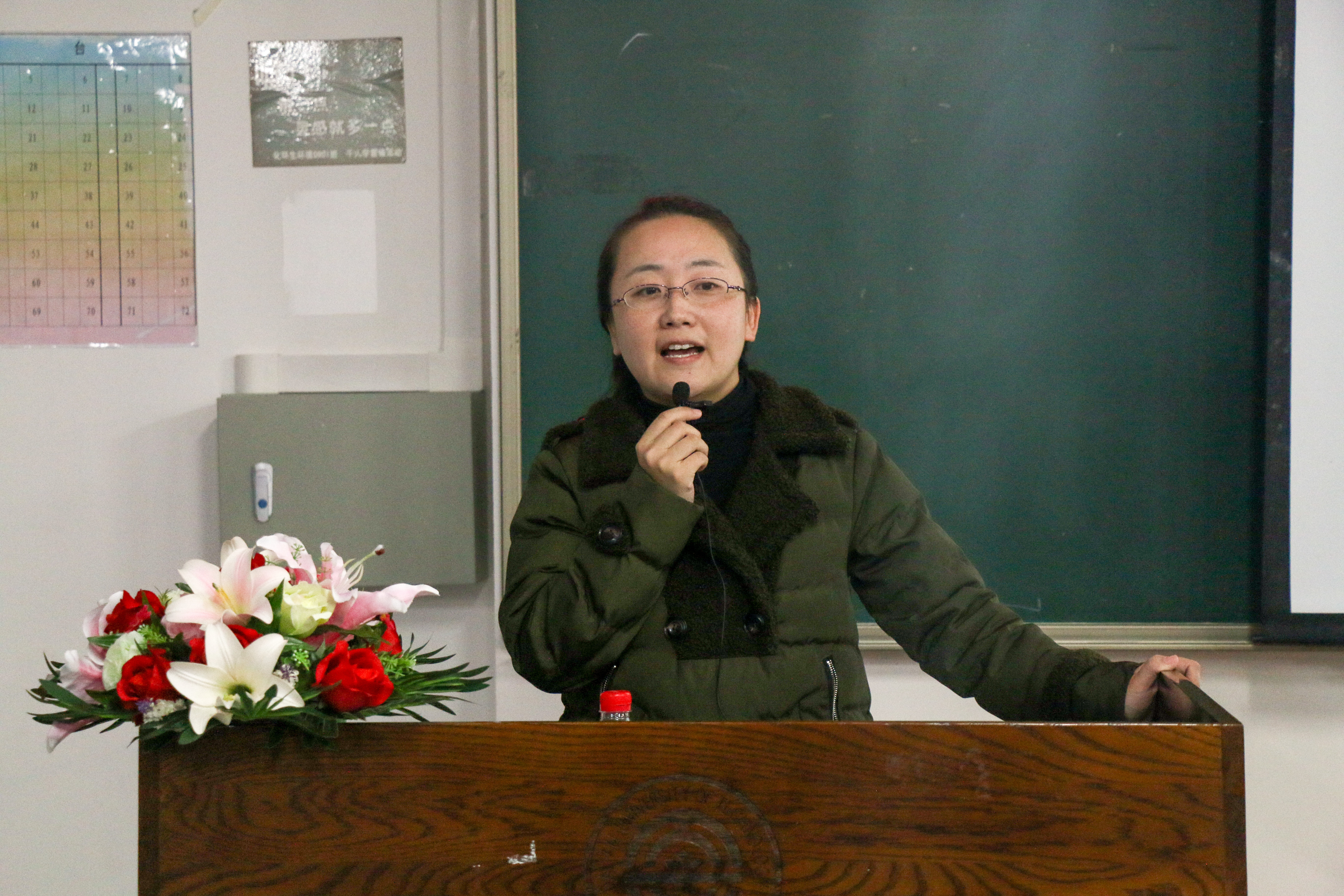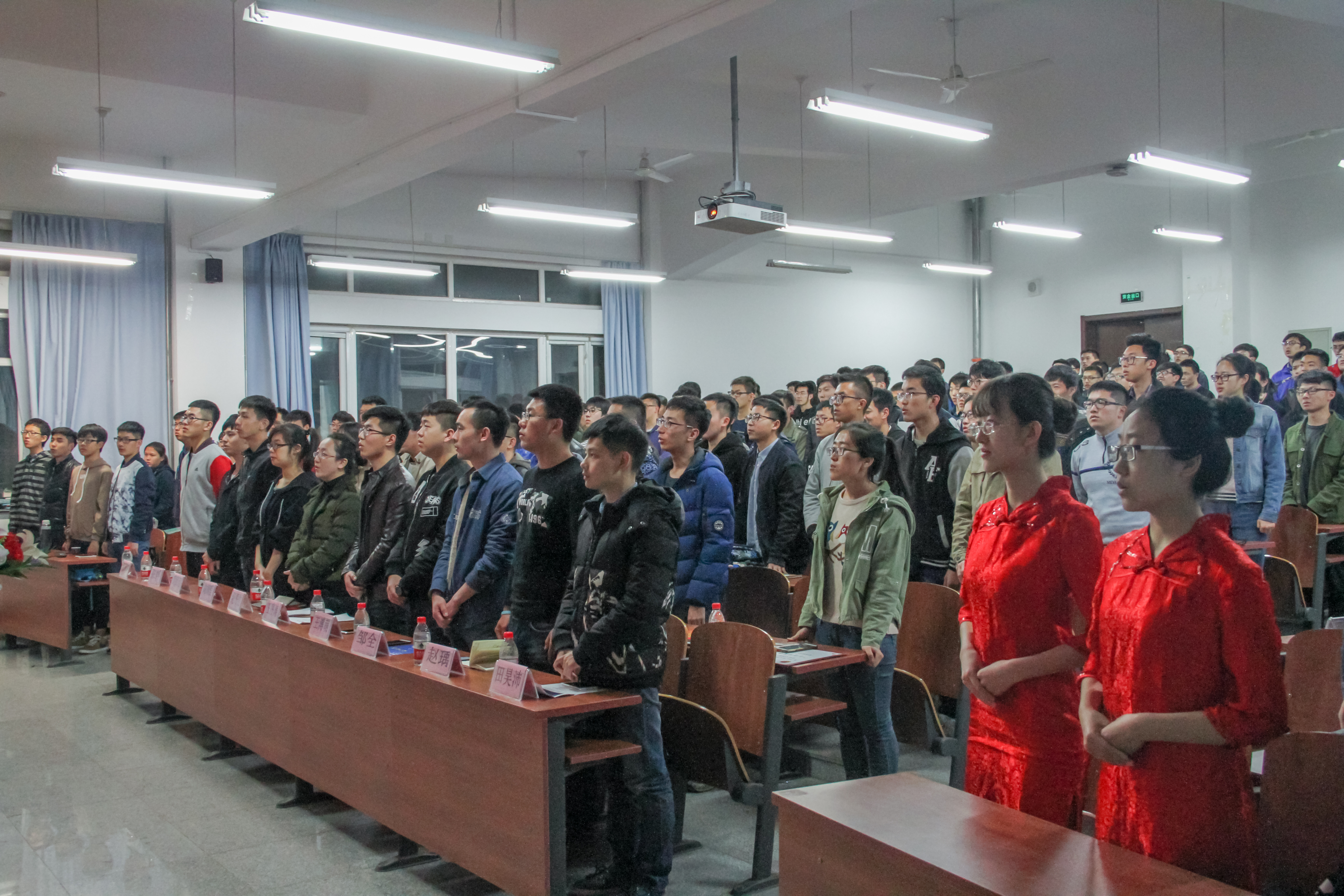 在大会进行完第一项——全体到场成员起立,奏唱团歌后,团委书记纪丹红老师上台讲话。纪丹红老师首先进行了简要的自我介绍,希望尚未熟悉的第十一届团学社干事们能够尽快熟悉自己。之后,纪丹红书记阐述了自己作为团学社的一员,对于团学社的印象和看法并展示了参加团学社所能得到的提高和锻炼,为干事们讲述了当今社会在求职时企业单位对团学社工作经验的诉求,激发了同学们的工作热情。最后,纪丹红老师对未来的团学社工作和团学社发展作出了期待和要求。其中,书记尤其强调希望团学社的各位能够做到“三心三意”,即进取之心、敬畏之心、感恩之心;大局意识、合作意识、补位意识。平衡好自己的学习和团学社的工作,勿贪多,有效率地参与到团学社的建设当中来,并对团学社未来发展送出美好的祝福。