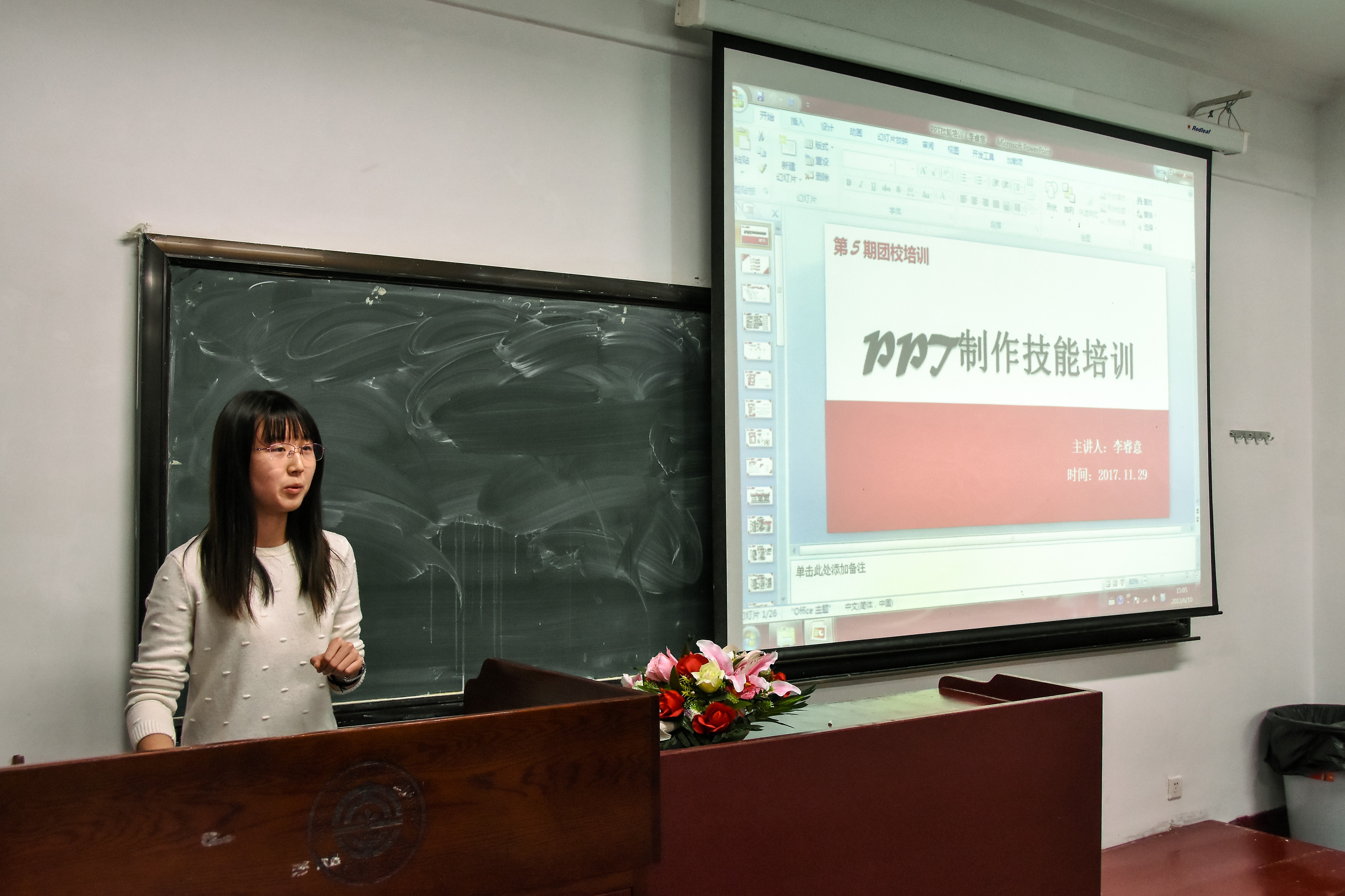 11月29日晚6:30,为满足同学们对PPT制作和公文写作技能的需求,近一步提高同学们的工作水平和服务同学的能力,好博官方网站于机械馆召开第五次团校,并对相关方面技能进行培训。出席本次团校培训的嘉宾有团委常务副书记李睿意,实践部部长罗英,以及实践部副部长刘璐。