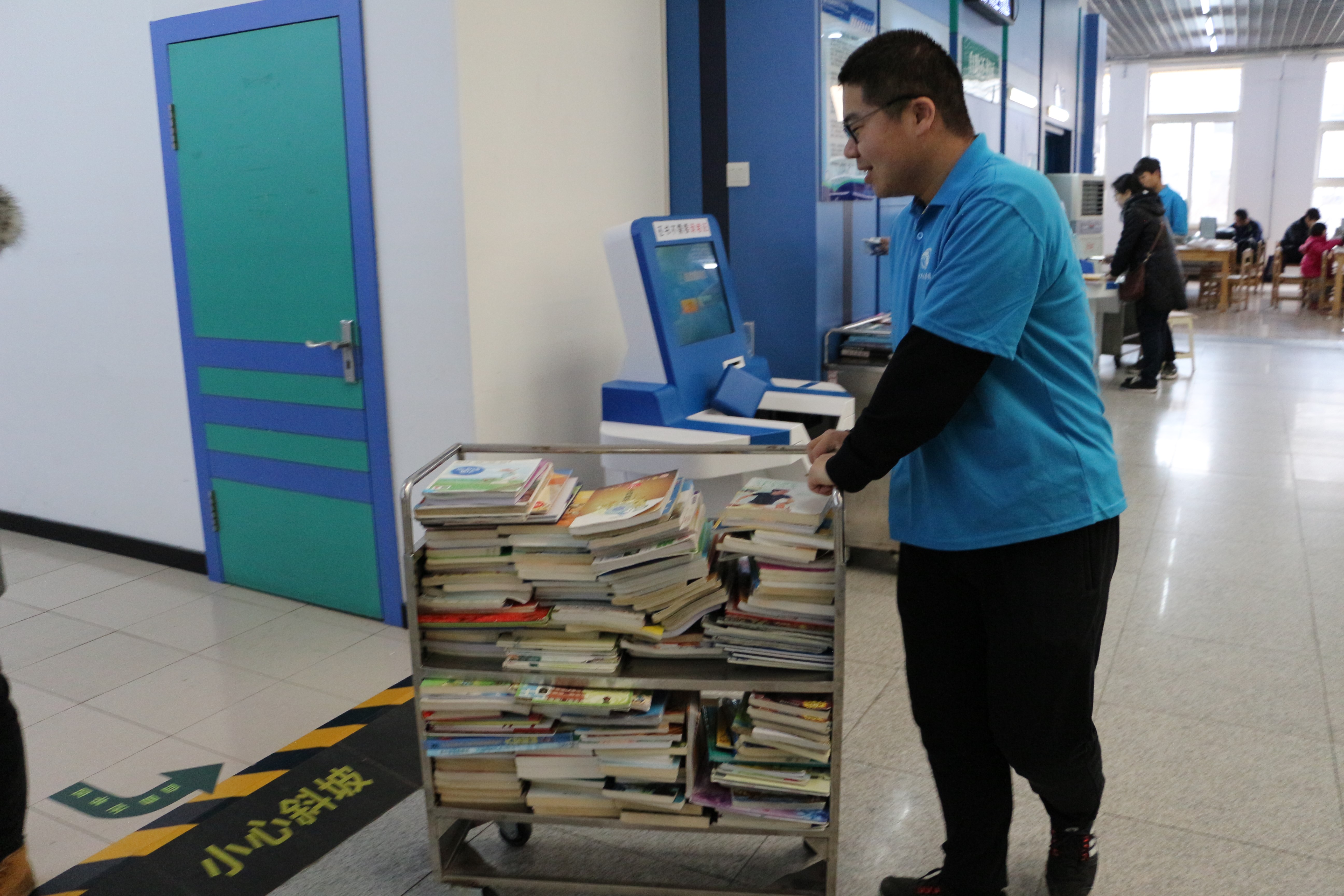 志愿者们早早到达图书馆,图书馆工作人员为大家分发志愿者服装,并教给大家自助借还书机的用法。图书馆后,大批读者不断地涌入,自助借还书机前很快排满了等待借书与还书的人们。志愿者主动上前,帮助那些不熟悉借还书流程的读者们了解机器的使用方法。由于来图书馆的小读者居多,志愿者们就手把手地教给他们如何操作,耐心地指引着他们。那一声“谢谢哥哥”、“谢谢姐姐”无疑是对志愿者们最好的回报。三个半小时内,志愿者们坚持工作毫不懈怠,无私地帮助前来寻求帮助的读者们。志愿者们的工作在中午12点半结束了,虽然每个人都很疲惫,但他们的脸上无不洋溢着笑容。这是辛苦付出的一天,也是收获满满的一天,这次志愿活动让每个志愿者的周日充满意义。