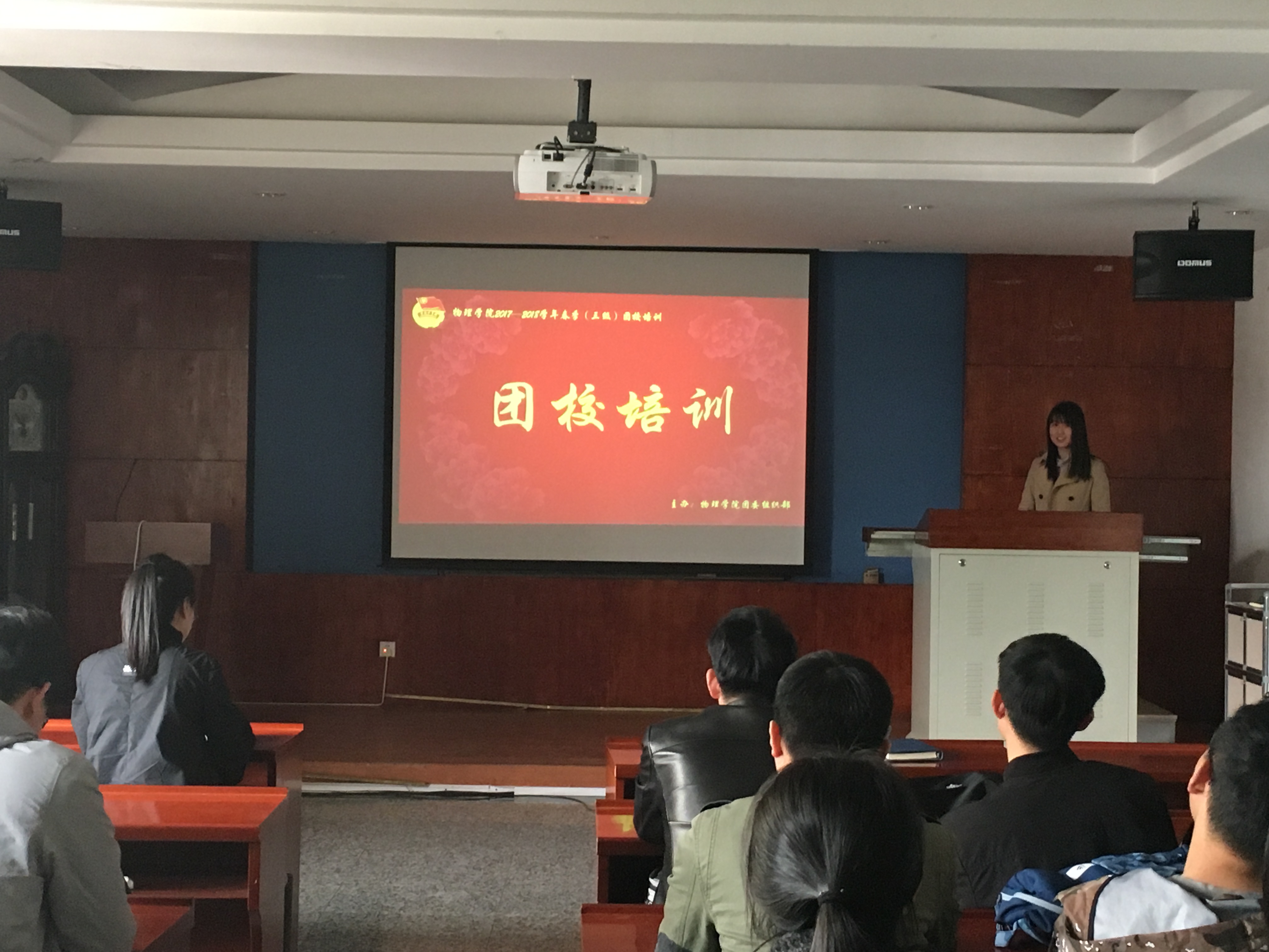 2018年3月29日中午,好博官方网站2017-2018学年春季第二次团校培训在好博官方网站系楼举行,本次团校培训邀请到的嘉宾有好博官方网站团委书记纪丹红、好博官方网站团委副书记李睿意以及团学社各部长级学生干部,团委各副部级学生干部。本次团校培训主要总结团学社这一阶段的工作情况,并讨论下一阶段的工作内容。