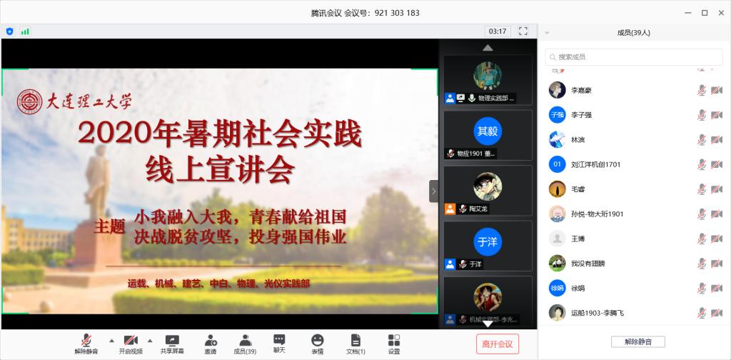 在解答同学们的有关问题后,主持人吴海欣宣布本次暑期社会实践线上宣讲会结束。此次线上宣讲会号召学生在遵守防疫相关规定的前提下,积极开展社会实践活动,丰富假期生活,通过实践活动学习先进人物与先进思想,更好地理解当代青年的使命与担当。