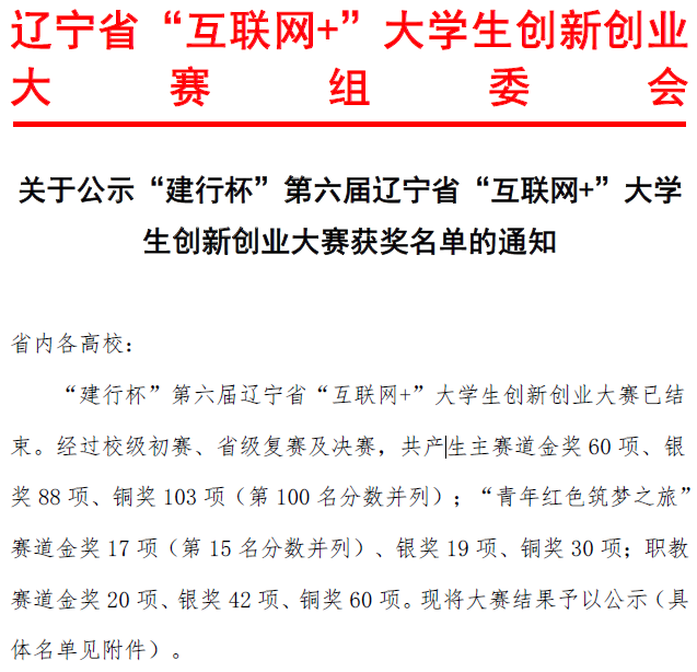 2020年9月7日至9日,由辽宁省教育厅举办的“建行杯”第六届辽宁省“互联网+”大学生创新创业大赛圆满结束,公示截止。大连理工大学,作为辽宁省985、双一流A类高校,在此次大赛主赛道中荣获金奖8项,银奖7项,铜奖4项,青年红色筑梦之旅赛道荣获金奖2项,银奖3项,铜奖1项。好博官方网站唯一“互联网+”团队“电力安全领跑者”获得主赛道创意组金奖,项目创始人为好博官方网站2017级本科生李天铭、中白学院2017级本科生孙维益。