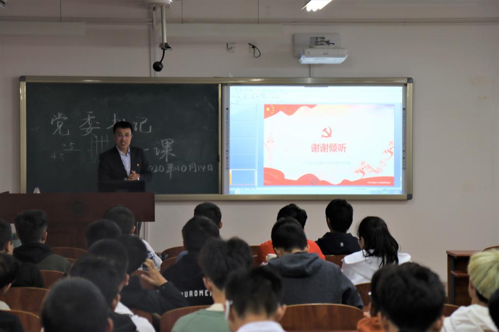 为传承红色基因,使2020级新生牢记初心,不忘使命,勇担时代重任,傲立改革潮头。10月14日下午15:30综合教学2号楼A201,党委书记王正汹教授为2020级新生上一堂别开生面的“党委书记第一课”,本次活动的主题为“百年未有之大变局,中华民族伟大复兴”。