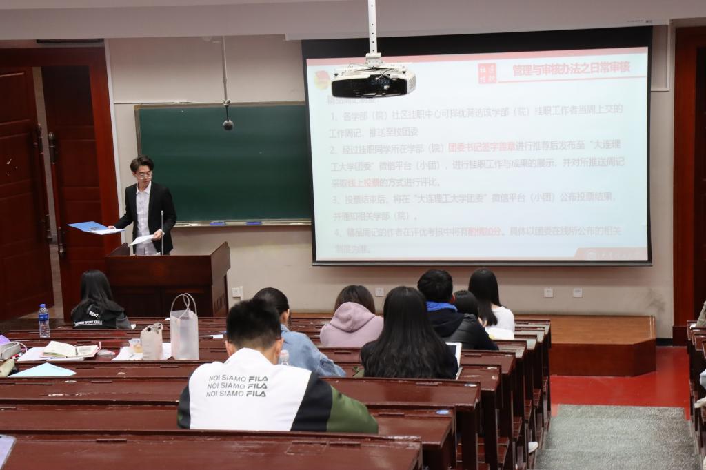 为响应团组织的号召,共青团大连理工大学委员会联合大连市沙河口区、甘井子区团区委开展大学生社区挂职特色服务活动。由好博官方网站、大连理工大学白俄罗斯国立大学联合学院、经济管理学院联合举办的社区挂职培训宣讲会于10月18日下午15:00在第一教学馆209教室顺利召开。好博官方网站学生郭沛担任本次宣讲会主持人。