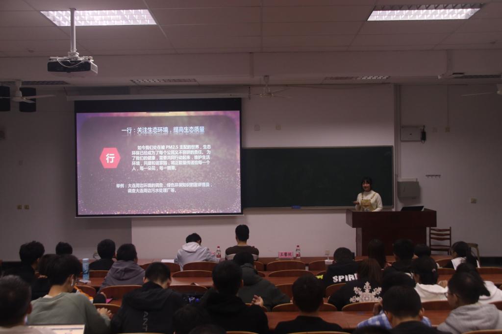 王馨悦首先向同学们介绍活动“实践铸就青春梦,观测和落实六个一”的主要内容,其中提到要贯彻落实习近平总书记关于大学生成长成才的一系列重要讲话中的要求。接着王馨悦介绍本次社会实践月的主要目的:在社会实践中锤炼自己、提高自己,做一个志存高远、德才并重、情理兼修、勇于开拓的青年,在火热的青春中放飞人生理想,用奋斗去谱写青春华章。此外王馨悦向大家推荐一些实践活动包括“一观、一享、一行、一寻、一做、一访”,同时特别强调今年新增加的活动类别:思修类、毛概类、近代史类。在最后,王馨悦还为大家讲解活动的要求及注意事项并留下相关负责人的联系方式,以便解答大家对活动的一些疑问。